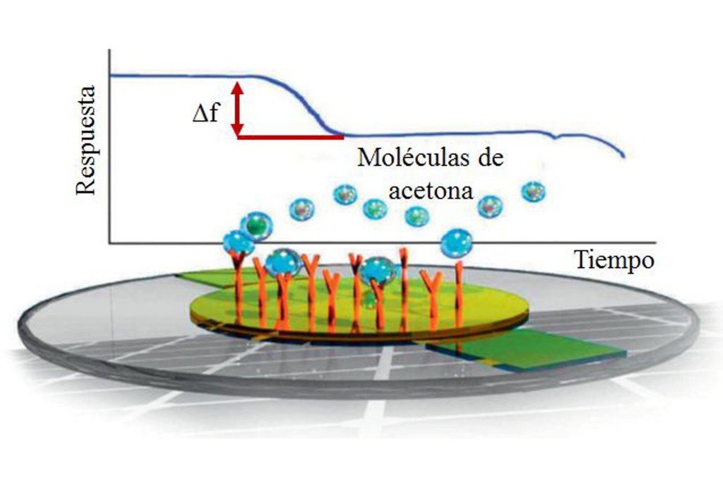 El dispositivo desarrollado en la Máxima Casa de Estudios en Puebla utiliza un resonador de cuarzo (un cristal de 8 milímetros de diámetro), al cual se le conectan dos electrodos y encima se deposita una película sensible (orgánica) para la detección de vapor de acetona exhalado en el aliento. Este sistema se conecta a un circuito oscilador, luego a un medidor de frecuencia y de este se procesan las señales en la computadora.