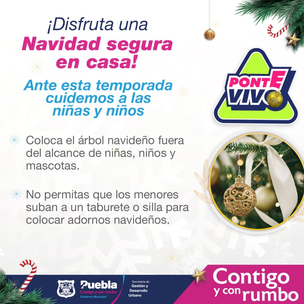 Con el objetivo de que la ciudadanía pueda disfrutar de unas fiestas decembrinas seguras y en paz, el Ayuntamiento de Puebla que preside Eduardo Rivera Pérez, a través de la Secretaría de Gestión y Desarrollo Urbano, brinda una serie de recomendaciones.