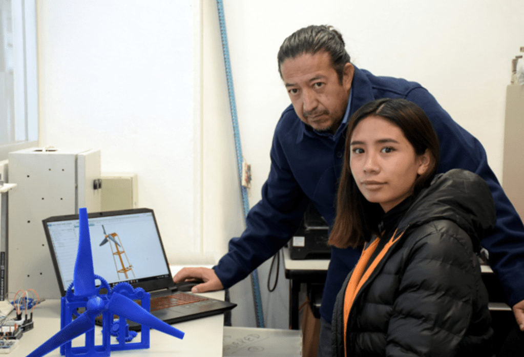 Además, Guadalupe Jiménez Roano, estudiante de Ingeniería Mecánica y Eléctrica, quien participó en el diseño de la plataforma giratoria, cuyo propósito es que la turbina se adapte a la dirección del viento. En este proyecto, dijo, “aprendí acerca de los procesos de fabricación, mediante un diseño asistido por computadora (CAE) para ser llevado a la realidad. Esto me da una dirección e idea del área en la que quiero desempeñarme”.