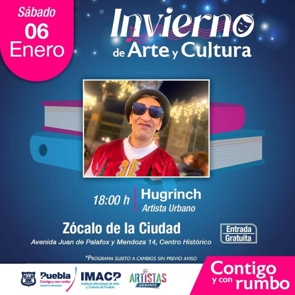 El Ayuntamiento de Puebla que preside Adán Domínguez Sánchez, a través del Instituto de Arte y Cultura (IMACP), invitan a disfrutar de este inicio de año con una cartelera donde el talento y la diversión se unen con actividades para todas las familias poblanas y visitantes.