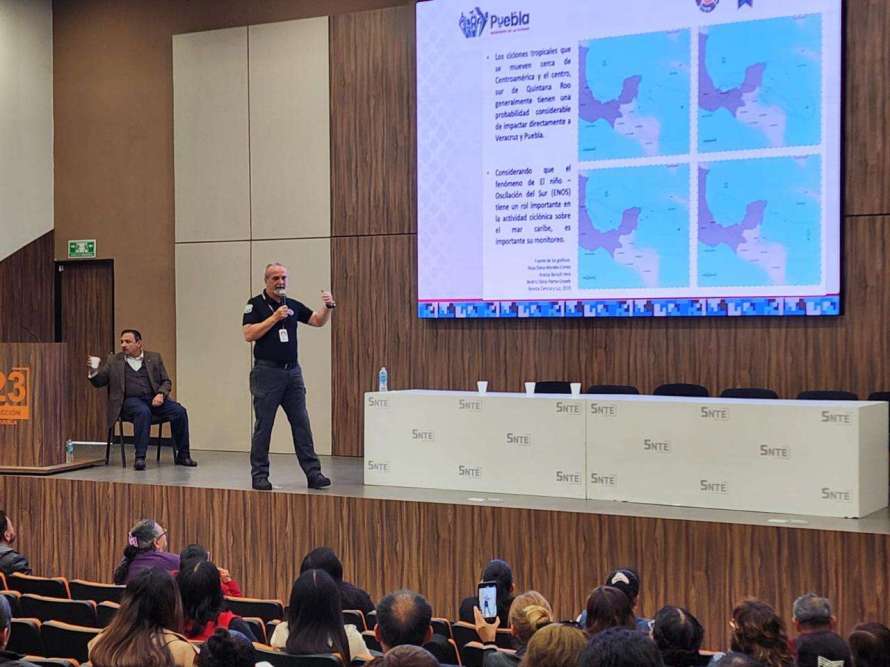 Como parte de estas acciones, se llevó a cabo una capacitación para personal del Sindicato Nacional de Trabajadores de la Educación (SNTE), a fin de dotarlos de conocimientos clave sobre cómo actuar ante fenómenos hidrometeorológicos. Esta formación fue impartida por el director de Protección Civil Municipal, César Orlando Flores Sánchez, y por el director de Gestión de Riesgo en Materia de Protección Civil, Rubén Borau García, orientada a difundir el Plan Escolar de Gestión de Riesgos.
