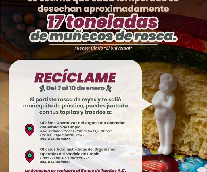 – El OOSL invita a reciclar estas figuras, al igual que las taparroscas de las botellas de plástico para darles un segundo uso Redacción Más Sana Con el fin de contribuir al cuidado del medio ambiente, el Gobierno de la Ciudad, que encabeza el alcalde, Pepe Chedraui, a […]