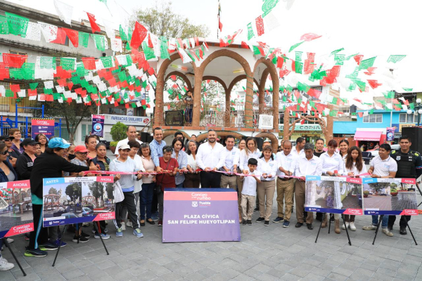 Inaugura Ayuntamiento de Puebla la rehabilitación de la Plaza Cívica de San Felipe Hueyotlipan